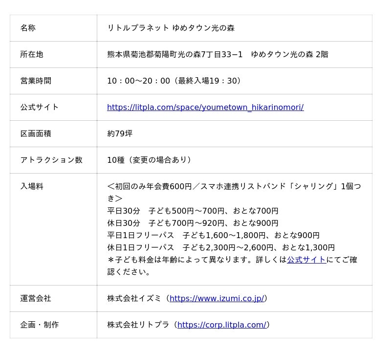 熊本初登場!遊びが学びに変わる次世代型キッズテーマパーク「リトルプラネット ゆめタウン光の森」、4月24日(金)オープン!