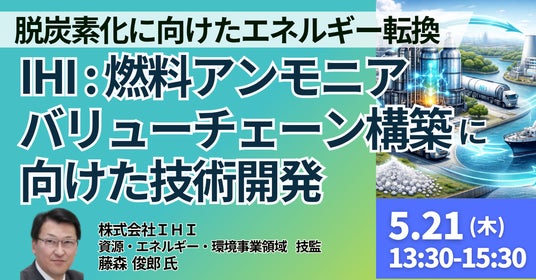 【JPIセミナー】「IHIにおける燃料アンモニアバリューチェーン構築に向けた技術開発および事業戦略 ~社会実装に近づく技術開発の現状及び課題と見通しを徹底解説~」5月21日(木)開催