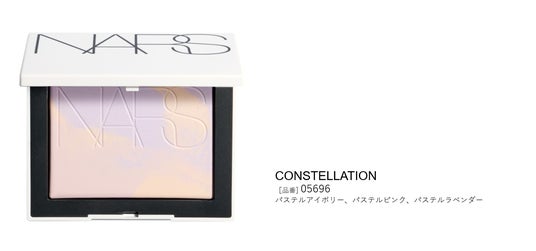 パステルアイボリー、ピンク、ラベンダーの3シェードを絶妙にブレンド。肌にほのかな明るさを添えながら、黄ぐすみを自然に補正します。パステルカラーを織り込んだマーブル模様のパウダーは、ひとつとして同じものはなく、それぞれのコンパクトはあなただけの輝きを放ちます。星座が瞬く夜空のような、存在感を放つ肌。