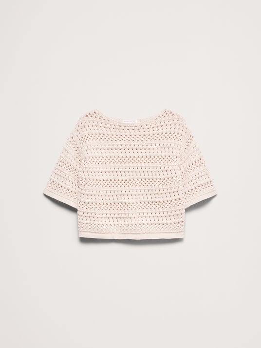 - コットンクロシェットセーター(17,000円):柔らかなコットン100%のクロシェ編みトップス。