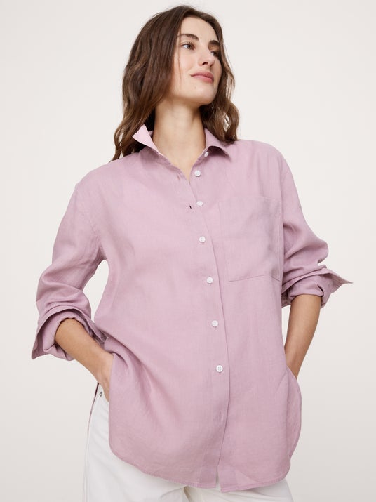 - オーバーサイズ リネンシャツ(15,000円):上品な質感と通気性に優れたヨーロッパ産リネン100%で仕立てたシャツ。
