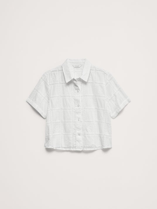- エンブロイダリー ボクシー クロップドシャツ(22,000円):刺繍がほどこされたボックスシルエットのシャツ。軽やかなコットンローン素材を採用。