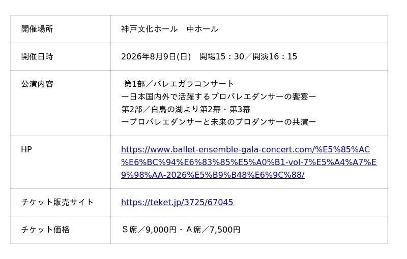 [バレエアンサンブルガラ2026] - マーティ株式会社 主催のバレエアンサンブルガラ公演が、この夏、関西・関東の2会場で華やかに開催されます!