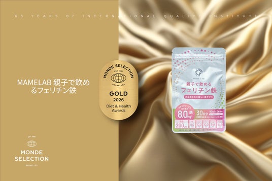 株式会社KURUKURU(本社:東京都中央区銀座6-10-1 GINZA SIX 13F、代表取締役:関沢 康寛)が展開するサプリメントブランド『MAME LAB(まめラボ)』の『まめラボ フェリチン鉄』および『まめラボ 親子で飲めるフェリチン鉄』が、国際品評会「モンドセレクション2026」のダイエット&健康製品カテゴリーにおいて、金賞を受賞いたしました。2025年の初受賞に続く2年連続のW受賞となります。