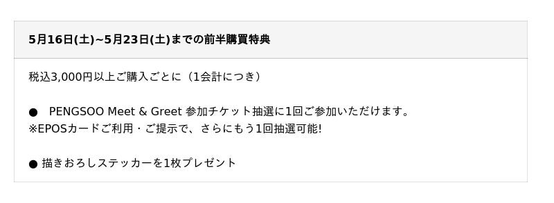 【PENGSOO Meet & Greet in Shinjuku Marui Annex イベント内容】