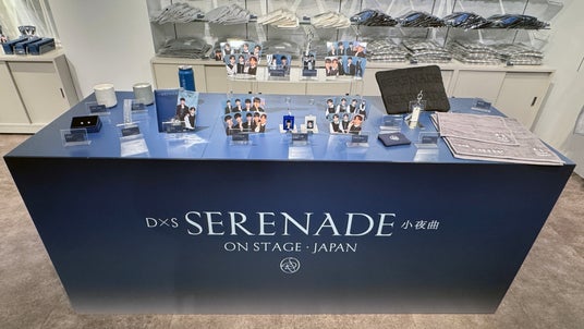 『DxS [SERENADE] ON STAGE - JAPAN POP-UP STORE』では今回の公演を盛り上げる日本公演オリジナルの商品をはじめとしたDxS [SERENADE] ON STAGE Official Merch.を販売しています。特に今回のラインナップの中での注目商品は、DxSのロゴが施されたシャツやTシャツなどのアパレル商品やタンブラー、キャンドルなど日常使いができるアイテムです。その他にも、SNSで話題になったタオルなどの遊び心が感じられる商品も多数販売されています。また、DxS 1st Mini Album「Serenade」オリジナルラベル缶が購入できる自動販売機も設置されています。