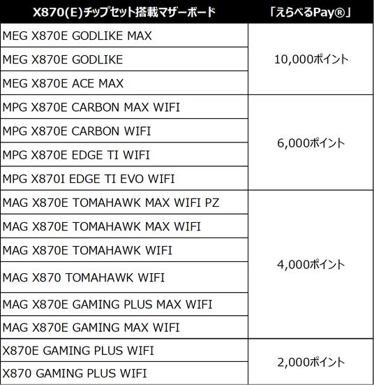 MSI、「GWビルド応援キャンペーン」を開催対象製品購入&応募で、1製品につき「えらべるPay(R)」 最大10,000ポイントをプレゼント!
