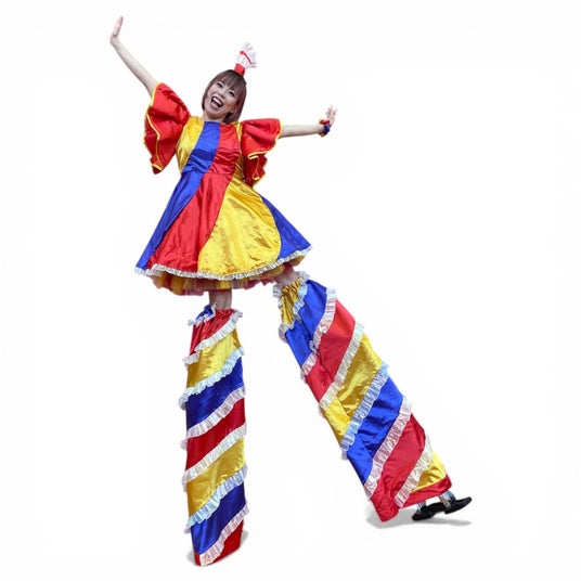 日本屈指のスティルト技術を誇るパフォーマーKymmy。ポップでキュートな衣装から気品漂う優雅なドレスまでその変幻自在なスタイルで観客を魅了します。衣装に合わせて表情を変える多彩なパフォーマンスは子どもから大人まで誰もがくぎずけに!!さあ、あなたの街にも笑顔と驚きの魔法を味わってみてはいかがでしょうか。
