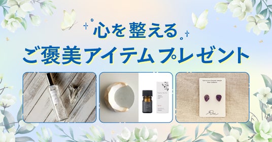 日々を頑張る方へ向けた「心を整えるご褒美アイテムプレゼントキャンペーン」を実施。期間中、占いメニューをご購入のうえ申し込みフォームからエントリーいただくと、cocoloni Selectの厳選アイテムを抽選で計3名様にプレゼントします。ホワイトセージの浄化スプレーやアロマストーン、アメジストのピアスなど、自分を整える特別なラインナップをご用意。実施期間は2026年4月27日12:00~5月13日23:59、当選発表は発送をもって代えさせていただきます。