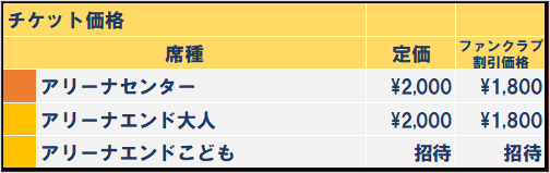 ※アリーナセンター席及びアリーナエンド席の一部の席を販売し、販売状況により残りのアリーナエンド席の販売を行います