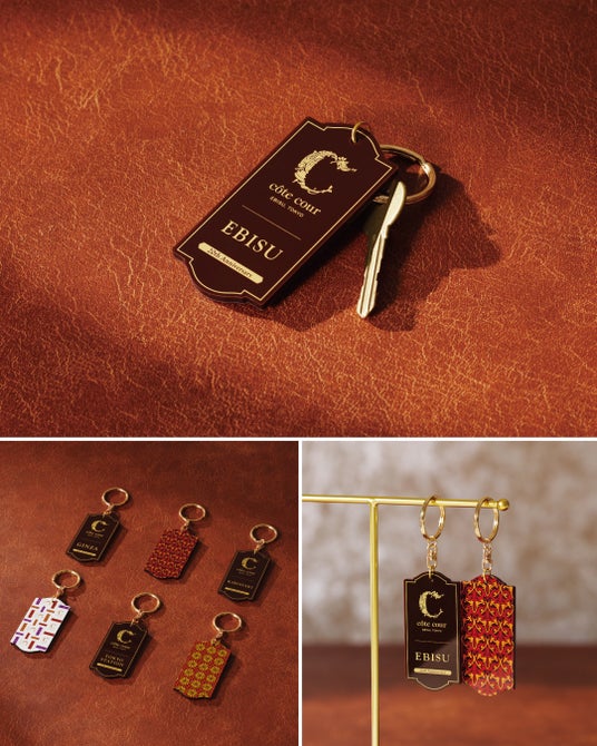 ブランドカラーを基調にロゴをあしらい、上品に仕上げたオリジナルチャーム。 恵比寿本店をはじめ、店舗ごとに異なるデザインで用意しており、背面の絵柄はパッケージデザインを採用しています。各店で違うデザインは、思わず集めたくなる仕立てです。