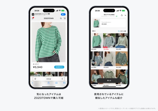 (※4)「似合う」を構成する4つの要素のうち、「ジャンル」は「ZOZOの似合うコーデAI ラボくん」に搭載済み。複数のコーディネート画像の中から好みのコーディネートを選択することで、当社独自のAIが好みのファッションジャンルを診断。