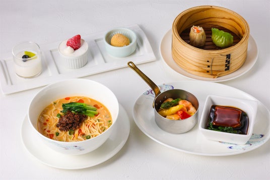 本格的な味わいの週替わり料理や飲茶に加え、お食事には大観苑で人気の「五目チャーハン」や程よい旨辛が病みつきになる「担々麺」など全6種類の麺・飯からお好きな一品をお選びいただけます。食後には月替わりの香り高い中国茶とデザート3種の盛り合わせもご用意。お腹も心も満たされる、コストパフォーマンスに優れた贅沢なひとときをお約束します。