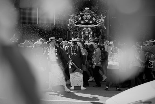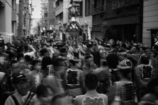 写真学校時代に課題としてこの祭りを知り、あの頃と同じ場所に立ち、再びファインダーを覗くと、祭りに集う人々の熱気や力強さは何ひとつ変わっていないことに気づきました。強い日差しの中で、汗を流しながら神輿を担ぐ人々の姿は、今も昔も変わらず、この街に生きるエネルギーそのものだと思います。