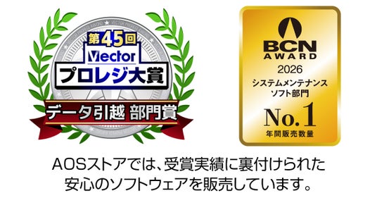 本セール対象の「ファイナルパソコン引越し Win11対応版」は、第45回Vectorプロレジ大賞を受賞しており、多くのユーザーからデータ移行のソフトウェアとして評価されています。また、AIデータ株式会社は、「BCN AWARD 2026」のシステムメンテナンスソフト部門 NO.1を受賞しており、データ管理・保護分野における実績を有しています。