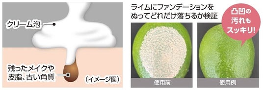 角栓崩壊成分配合のクリーム泡が、毛穴落ちしたメイク&角栓を緩めながら、絡め溶かします。【角栓崩壊成分】シクロヘキサン-1,4-ジカルボン酸ビスエトキシジグリコール(洗浄成分)、イソペンチルジオール(保湿成分)