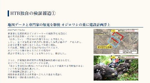 一連の報道をきっかけに釧路市は厳格な条例の制定、道は事業者に対し27回を超える行政指導や環境大臣に直接法改正を訴え、国はメガソーラー対策に着手すると明言しています。HTBでは再生可能エネルギーが自然や希少生物と共存していくために、今後も継続して取材を続けていきます。