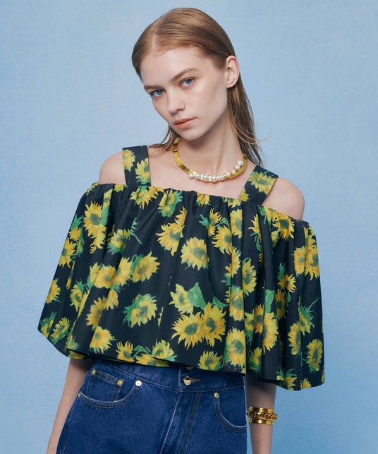 プリントやビジュー 表現されたひまわりモチーフが印象的な“SUN FLOWER”シリーズ。