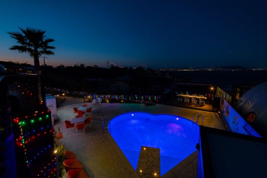 グランピングリゾートAwajiの敷地内にはオーシャンビューのハート形プールがございます。ご利用頂けるのは宿泊者のみ。