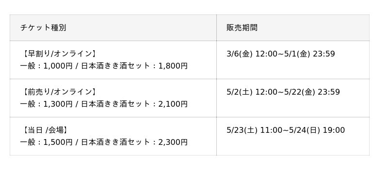 最もお得な早割りチケットの販売は5月1日 (金) まで