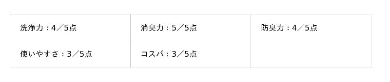 汚れ落ちは十分。防臭・消臭力もまずまずです。