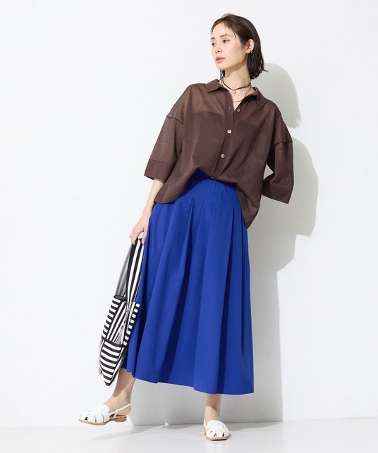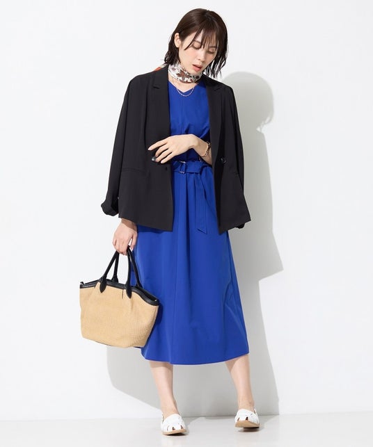 撥水機能に加え、UVカット機能も備え、雨の日や日差しが気になる日にも活躍します。セットアップ着用も可能なブラウスやブルゾン、スカート、パンツの他、ワンピースも取り揃え、ワークシーンからオフの日まで着回せる充実のラインアップ。