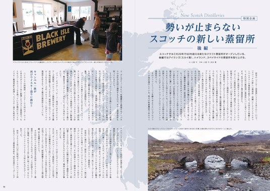 今回はアイランズ(スカイ島)、ハイランド、スペイサイドの新たな蒸留所を紹介。新規設立の一方で目立つのが、閉鎖蒸留所の復活で、「ウイスキー蒸留所博物館」として有名なダラスドゥー蒸留所もそのひとつ。復活する蒸留所の貴重なアーカイブ写真も掲載。