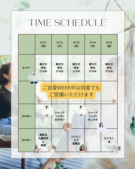 「ご自愛WEEK 2026」のタイムスケジュール。1日15分から、何度でも参加可能です。