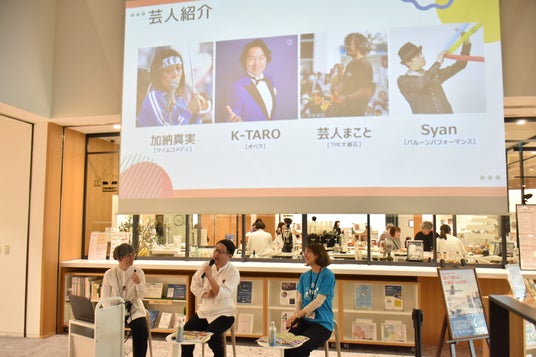 アーティストたちがまちに飛び出し、ジャグリングやバルーン、アクロバットなど多彩なパフォーマンスを繰り広げます。4月11日(土)、豊橋市まちなか図書館で行われたトークイベントでは、プロデューサーを務める橋本隆平さんが登壇し、「初登場の出演者が多い」という今年の見どころを紹介しました。