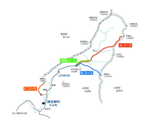 ●Aコース(健脚向き)針生平から北大玉山を経て平岩山(1,609m)を目指す本格ルート。