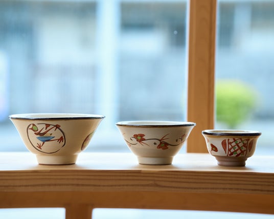 「ギャラリーはらいそ」國場陶芸 4寸マカイ4,400円・3.5寸マカイ3,630円、湯呑み3,630円