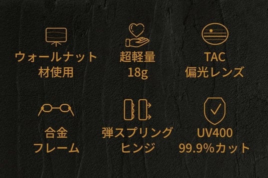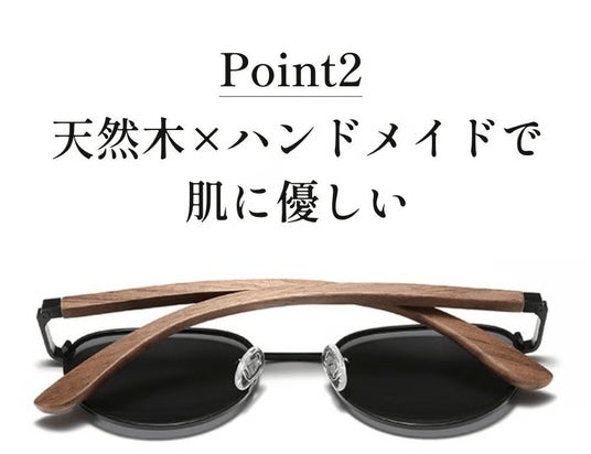 天然木ウォールナット材を使用したフレームに、職人によるハンドメイド加工、そして自然な視界を実現する偏光レンズを組み合わせることで、長時間装着しても疲れにくい、かつてないかけ心地を追求しました。
