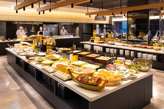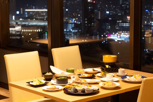 大きな窓から一望する長崎のきれいな夜景を眺めながら、当館自慢の料理の数々をご堪能ください。 “美味しさと楽しさの融合”を目指したプレミアムなバイキングでは、新たに「温泉せいろ蒸し」と、贅沢なひと時を締めくくる「ハーゲンダッツ アイスクリーム」が加わりました。これまでご愛顧いただいてきた「レモンステーキ」や、ボリューム満点の「トルコライス」、パリパリ麺にあんが絡む「皿うどん」など、ご当地メニューはそのままに、より洗練されたラインナップでお届けいたします。