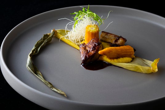 香ばしく焼き上げたフォアグラに、トウモロコシのやさしい甘みとバルサミコの酸味を合わせた、濃厚で奥行きのある味わいの温前菜です。