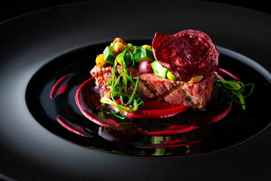 ほのかな土の香りと奥行きを添えるビーツを合わせ、ポートワインの果実味とコクを感じるソースで仕上げた、濃厚な旨みと果実の甘酸っぱさが