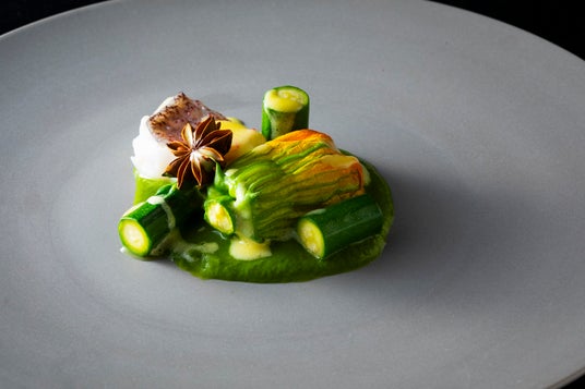 ふっくらと焼き上げた甘鯛に瑞々しいズッキーニを添え、ペルノー香るブールブランソースで