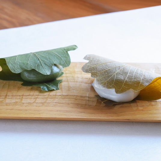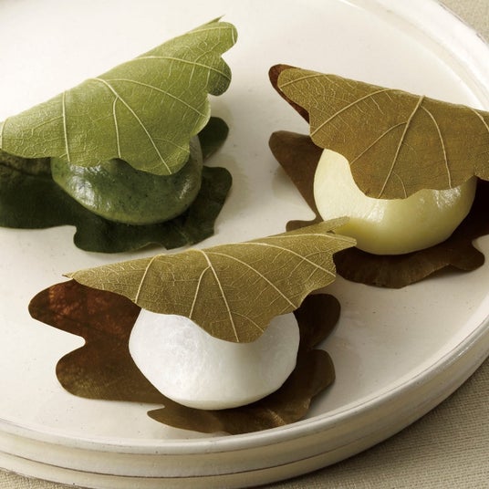 柏餅と粽(ちまき)は、子どもの健やかな成長と家族の繁栄を願って食べられる、伝統的なお祝い菓子。柏の葉や笹の葉の香りがうつった、初夏を感じさせるこの時期ならではの味わいです。かしわもち