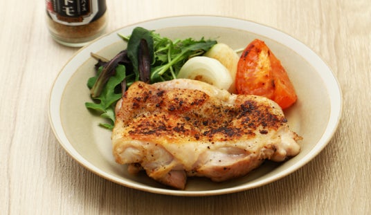 お酒がすすむチキングリルバターでこんがり焼いた鶏もも肉に、「ノミトモ」をひと振り。鶏皮の香ばしさにマーガオの爽やかな香りが重なり、旨みが広がります。どんなお酒も思わず進む、定番おつまみです。
