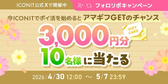 本キャンペーンは、「アイコニット」公式Xアカウントをフォローのうえ、対象ポストをリポストすることで応募できるSNSキャンペーンです。抽選で10名様にAmazonギフトカード3,000円分をプレゼントいたします。